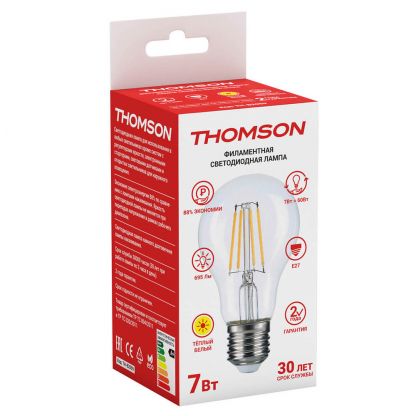 Светодиодная филаментная лампа Thomson A60 220V E27 7W (соответствует 60 Вт) 695Lm 2700K (теплый белый) TH-B2059